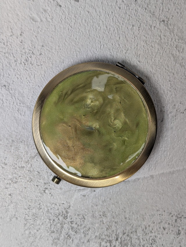 【一点物】封蝋コンパクトミラー 封蝋(シーリングワックス)が生み出す偶然の美しさを閉じ込めたコンパクトミラー 二度と同じ模様は作り出せない唯一の一点物です 美しい煌めきは角度や光によって幾様にも見え方が変わります 持ち歩くジュエリーとしていかがでしょうか ファッションや気分に合わせてお選びください ・直径約7cm(金具、開閉ボタン除く) ・ミラー部直径5.7cm ・厚み約0.7cm ・両面鏡(片面は拡大鏡) ※レジンで封じ込めております。硬いものとぶつかると傷がつきますのでご注意ください。 ※擦れなどにより細かい傷がついている場合がございますがご了承の上お買い求めください。 ▧ ▦ ▤ ▥ ▧ ▦ ▤ ▥ ▧ ▦ ▤ ▥ ▧ ▦ ▤ ▥ ▶商品の動画を少しずつInstagram(@chika_p.o.p._)で紹介しています 写真だけでは伝わりにくい表情の変化をご覧いただけます ▶直接販売等も行っておりますので、ページ上では販売中でもすでに品切れになっている場合がございます。(その際はお取引キャンセルとなります) ▶クーポン情報などもお受け取りいただけますので、ぜひフォローお願いします
