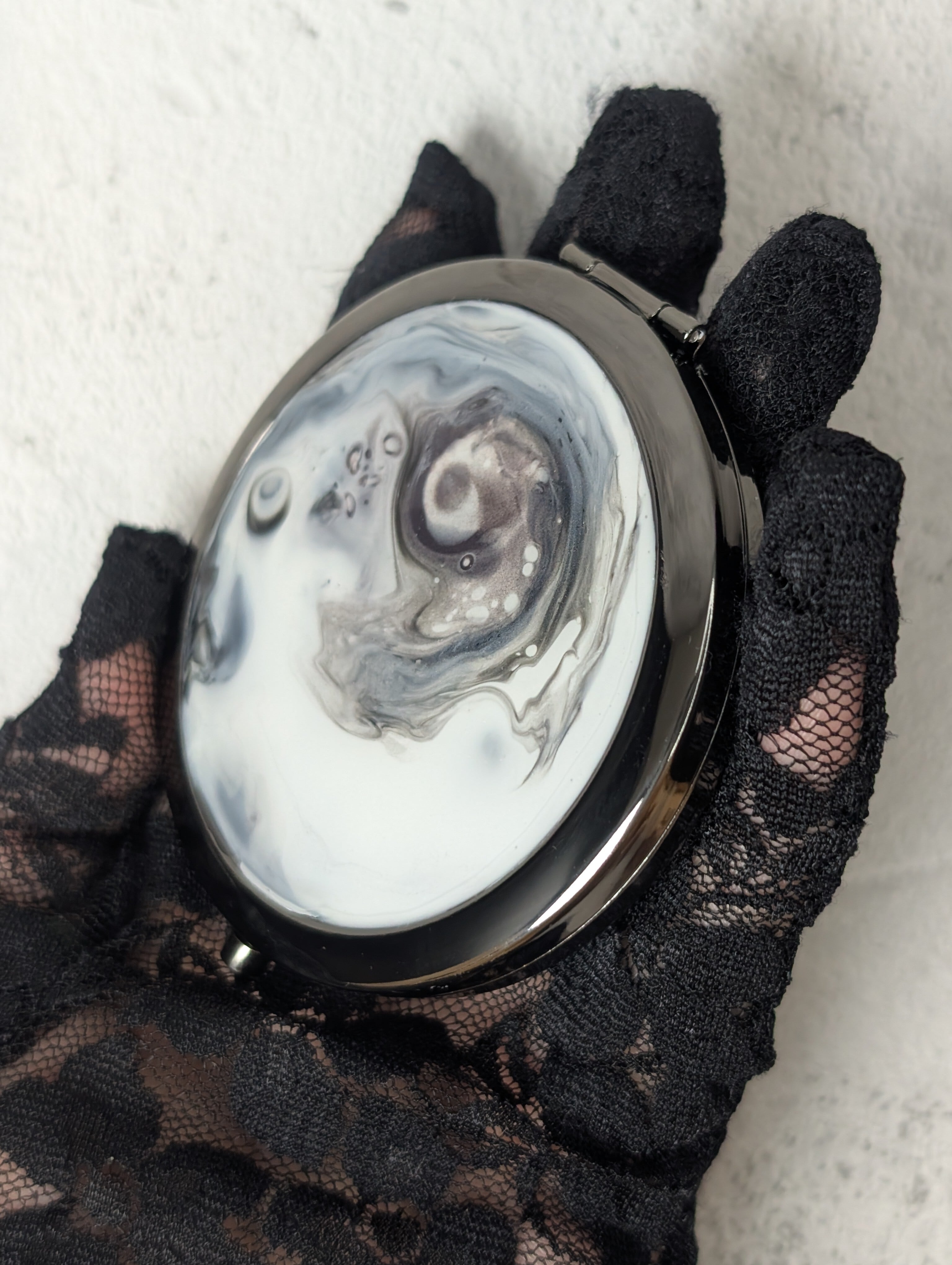 封蝋(シーリングワックス)が生み出す偶然の美しさを閉じ込めたコンパクトミラー